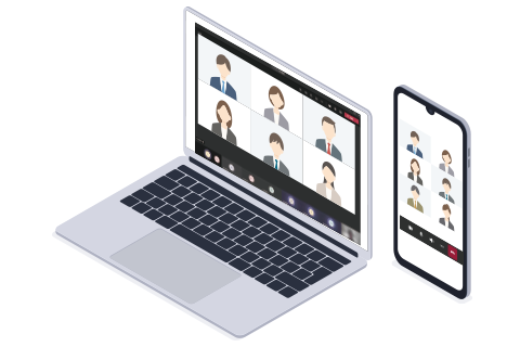 身近なWeb会議システムで、いつでもどこでも総会に参加でき、Web会議の画面上で議決権行使や質疑まで行えます。